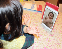 実際の授業は一コマ50分間。タブレットやPCで海外在住のESLティーチャーとオンラインで会話しながら、共有画面のデジタル教材を楽しく進めます。(25分間)