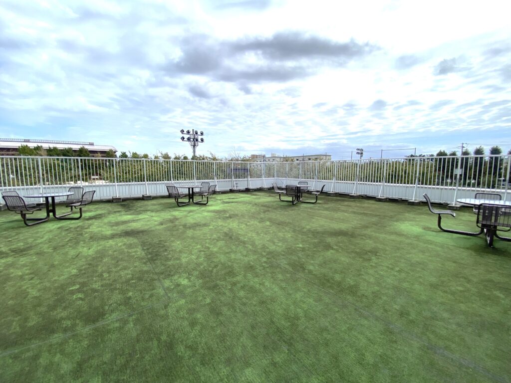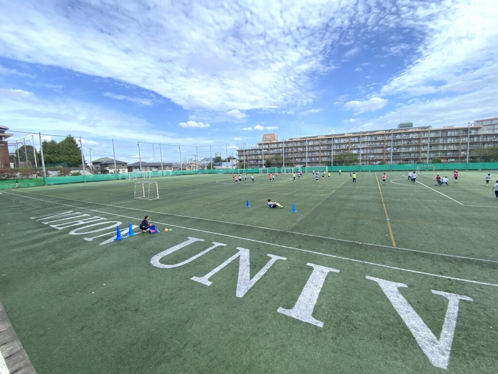 A32:通りを挟んで向かいの敷地に、本校のグラウンドがあります。